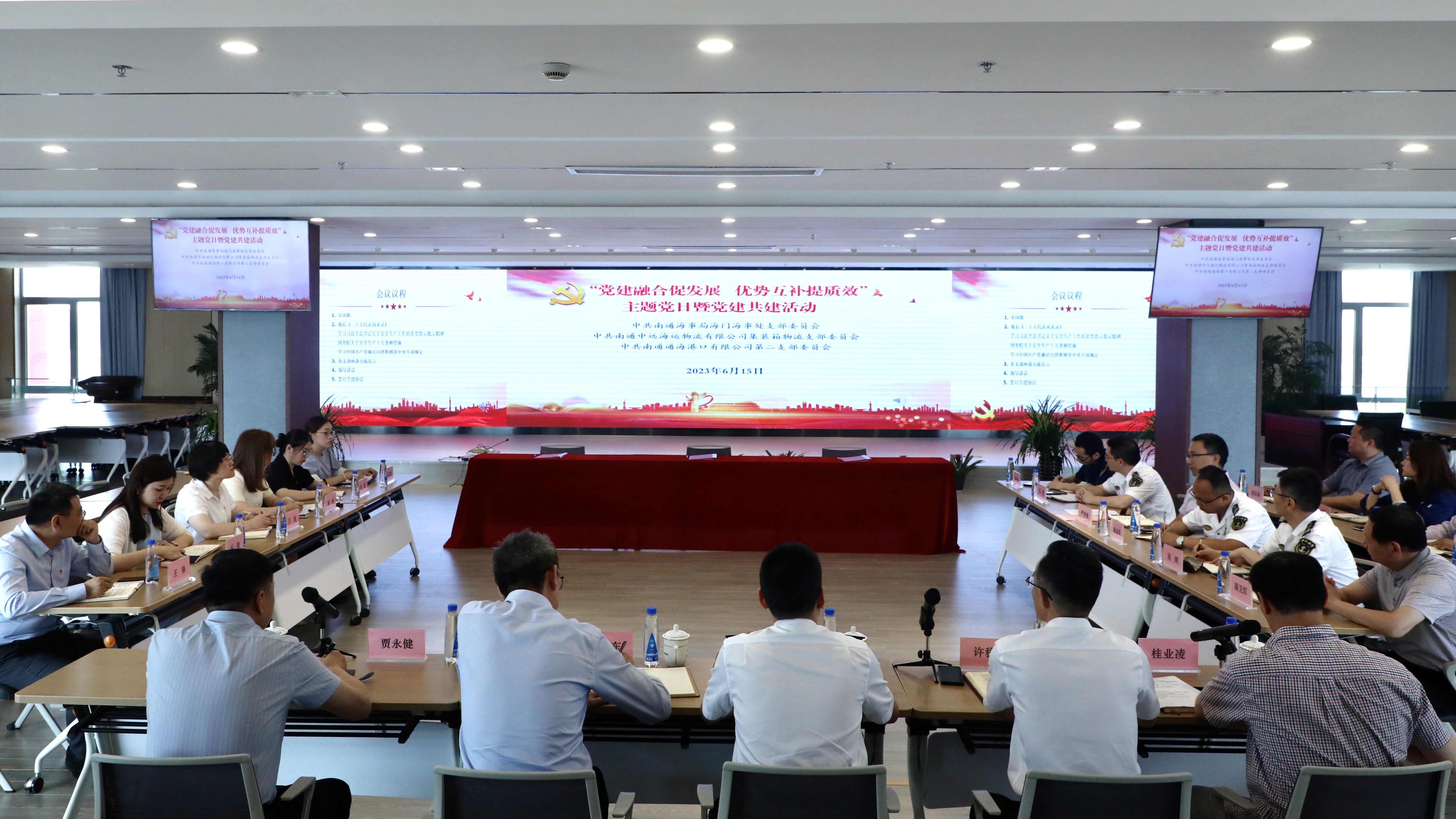 近日,通海公司第二黨支部與南通海事局海門海事處黨支部、南通中遠海運物流公司集裝箱物流黨支部開展“黨建融合促發(fā)展 優(yōu)勢互補提質(zhì)效”主題黨日暨黨建共建活動。三方黨支部黨員代表共23人參加本次活動。