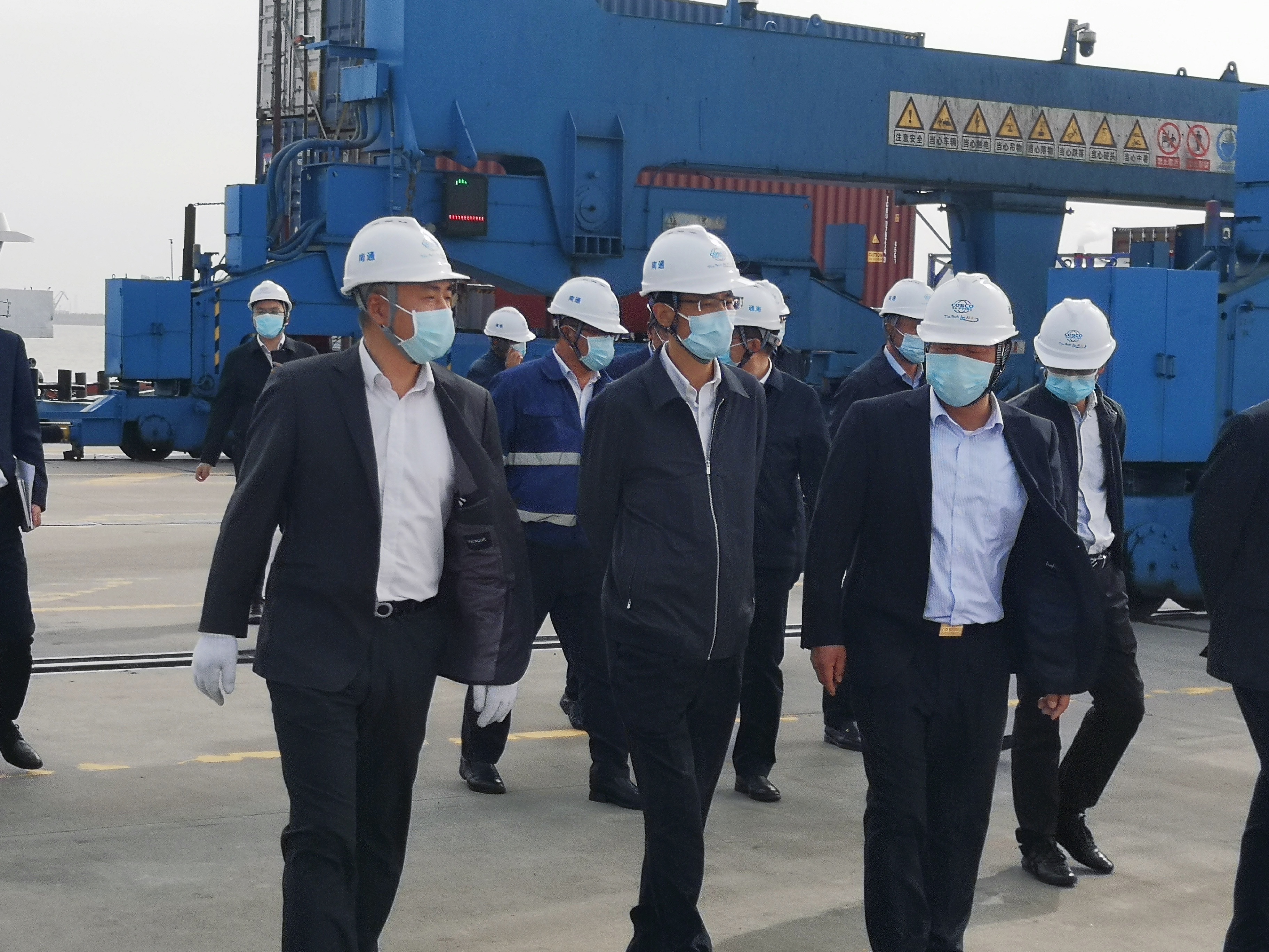 童劍一行在港區(qū)現(xiàn)場聽取了南通通海港口有限公司黨委書記、董事長許穩(wěn)林關于公司疫情防控、保通保暢與復工復產(chǎn)的情況介紹,并實地察看了碼頭一線安全生產(chǎn)措施落實和外貿(mào)船舶作業(yè)專班閉環(huán)管理情況。