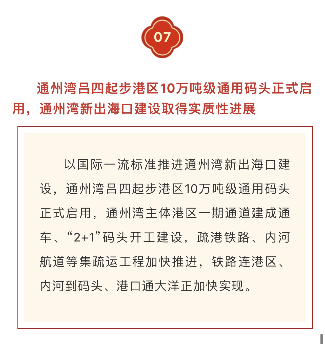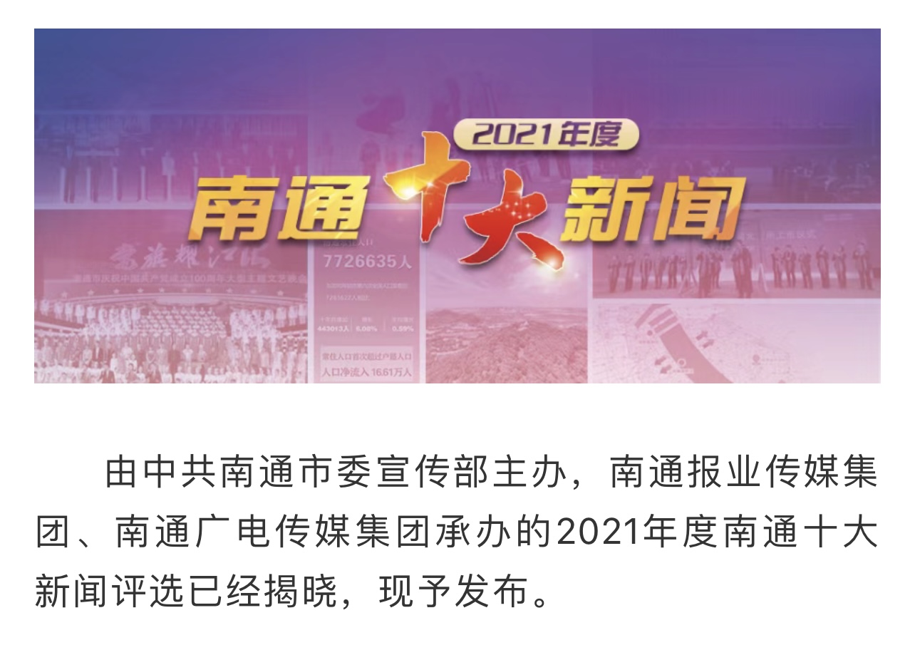 近日,由中共南通市委宣傳部主辦,南通報(bào)業(yè)傳媒集團(tuán)、南通廣電傳媒集團(tuán)承辦的2021年度南通十大新聞評選結(jié)果揭曉,“通州灣呂四起步港區(qū)10萬噸級通用碼頭正式啟用,通州灣新出海口建設(shè)取得實(shí)質(zhì)性進(jìn)展”成功入選。